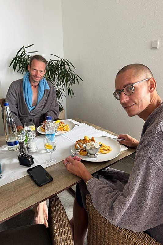 Natürlich gehört gutes Essen dazu. In der Chiemgau Therme gibt’s das Restaurant „Lakeside“. Wir haben dort eingekehrt, und was soll ich sagen: Essen war lecker, nicht überkandidelt, aber mit Stiel. Gute Auswahl, freundlich serviert, Portionen so, dass man danach noch Lust hat, vielleicht einen zweiten Saunagang zu wagen.