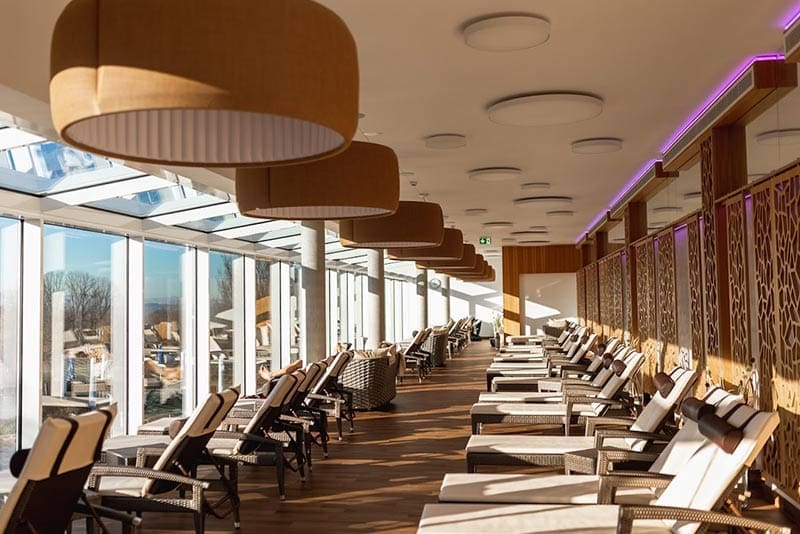 - Sehr angenehme wohl temperierte Entspannungsbereiche zum Schlafen und Erholen.