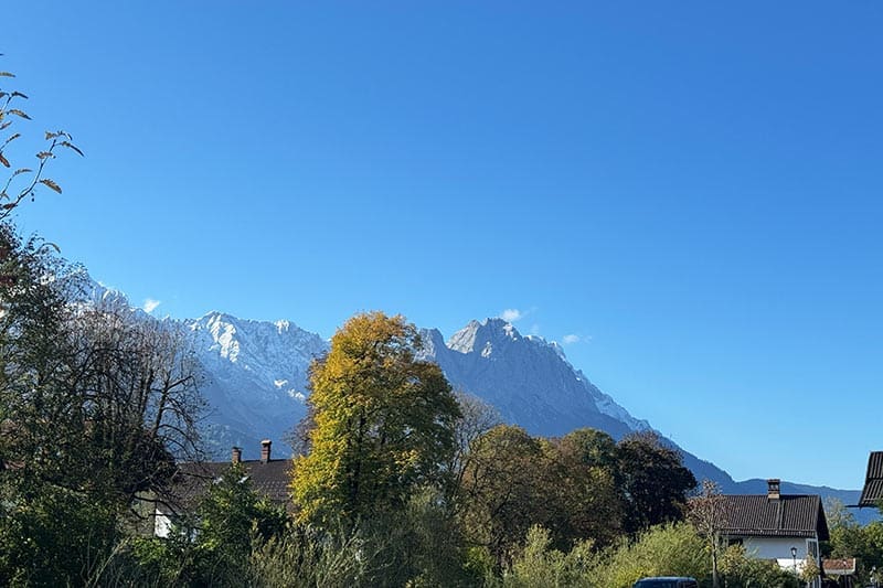 Das Hotel Aschenbrenner liegt an der Loisachstraße 46 in Garmisch-Partenkirchen. Das Haus steht unmittelbar an der Loisach, was auf den ersten Blick etwas geräuschvoll wirken könnte, doch wie wir empfunden haben — und wie Gästebewertungen bestätigen —: von Lärm war wenig zu hören, was auf sehr gute Schallisolierung, Fensterqualität und akustische Ruhe im Haus schließen lässt.