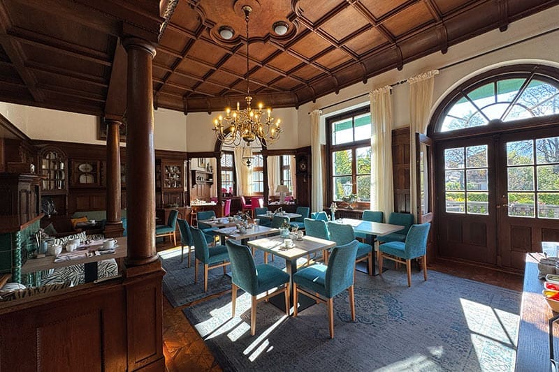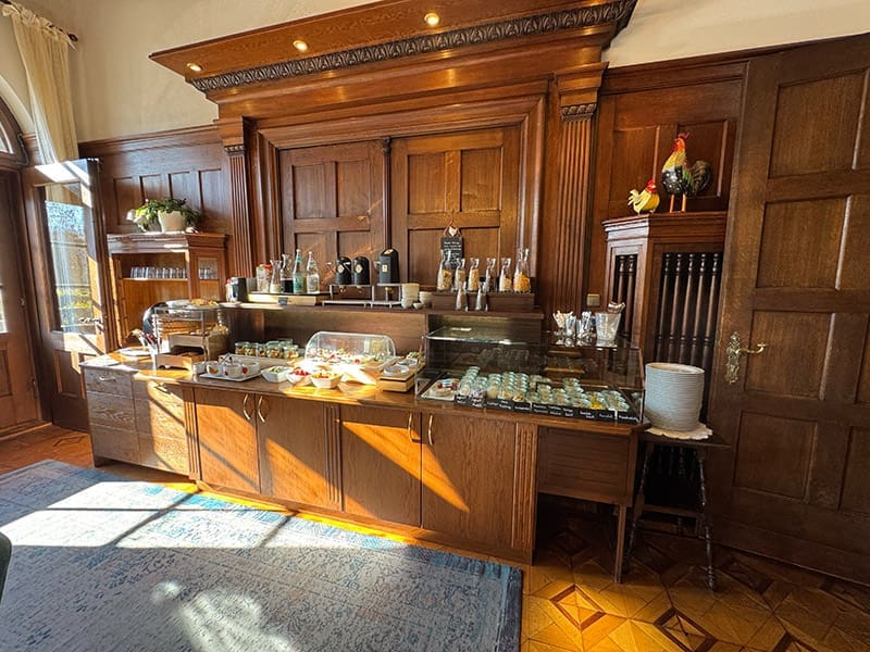 - Frühstück & Ambiente: Morgens wartet ein frisch gestärktes Frühstück entweder im stilvollen Frühstücksraum (ehemaliger Salon des Fürsten) oder auf der Sonnenterrasse mit Panorama auf die Gäste.