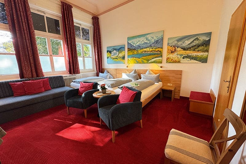 - Fürstenzimmer: Ein besonderes Highlight ist das sogenannte Fürstenzimmer, das größte Zimmer im Haus. Es befindet sich im ersten Stock und verfügt über eine Sitzecke im Erker mit Panoramablick.