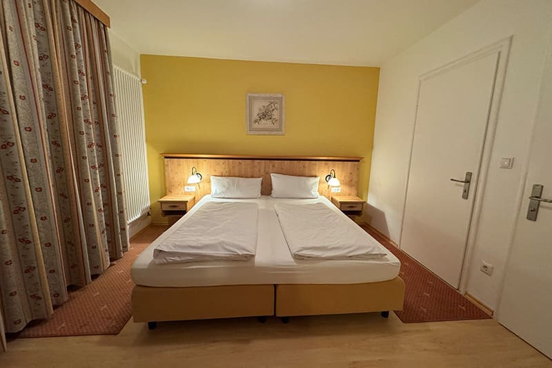 Unser Zimmer lag im Berghaus: Balkon, Sonnenlicht, Bergluft und ein Gefühl von Weite. Abends, wenn der See in der Dämmerung flirrte, war das einer der Momente, die man so tief in sich einspeichert.