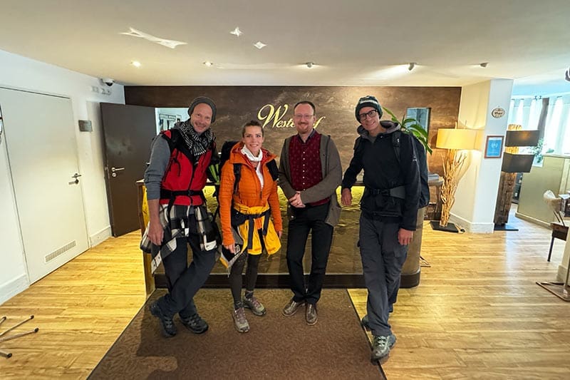 Als wir – die drei Lebensabenteurer – unsere Taschen geschultert haben und den Pfad hinauf zum Hotel "Der Westerhof" erklommen, war sofort klar: dieser Ort würde uns in seinen Bann ziehen. Zwar ließ das viele Treppensteigen mit schwerem Gepäck unsere Waden spüren, dass wir nicht in der Ebene angekommen waren, doch schon bald eröffnete sich ein Panorama, das alle Anstrengung mehr als wettmachte. Wir waren angekommen – hoch oben über dem Tegernsee, mit Blick auf das glitzernde Wasser und die umliegenden Berge, in einem Refugium der Ruhe und Atmosphäre.