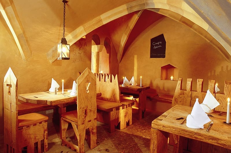 Von außen denkt man: „Ah, ein schönes, großes Haus.“ Von innen merkt man schnell: Hier ist nichts wie gewöhnlich und das ist auch gut so. Das Hotel wurde zwar 2005 eröffnet, aber so detailverliebt wie ein Mönch mit zu viel Freizeit entworfen. Kreuzgewölbe, dicke Mauern, romantische Nischen – du wartest förmlich darauf, dass gleich ein Ritter durchs Treppenhaus stapft.