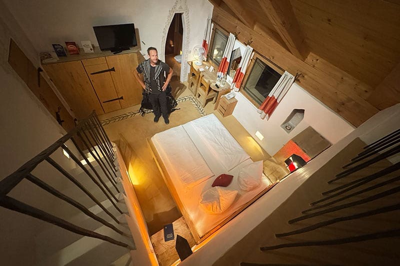 Und das Beste: Während alles aussieht wie Mittelalter, läuft’s drinnen wie im 21. Jahrhundert – Fernseher, WLAN, Minibar. Also: Schlafe im Himmelbett wie eine Prinzessin, binge-watch dabei Netflix und nipp an deinem Cappuccino. Mehr Zeitreise geht nicht.