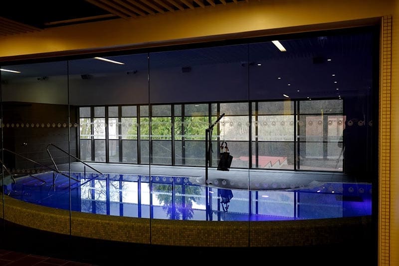 - Relaxationsbereich: Thermalbecken mit salzhaltigem Wasser (~32 °C), Jacuzzi, Gegenstromanlage, Saunen, Hammam, Caldarium.